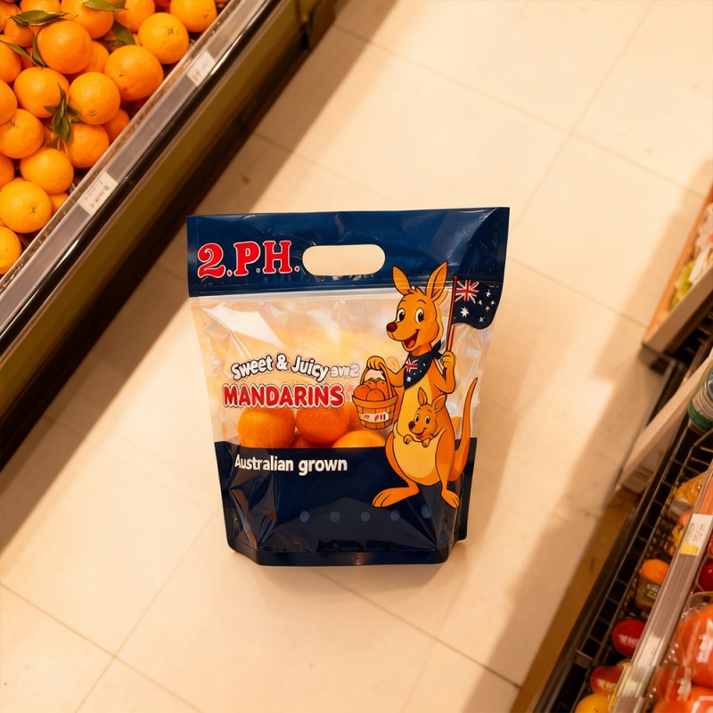 Der integrierte Reißverschluss des Produkts kann verhindern, dass der Inhalt nach Gebrauch aus dem Beutel fällt, und verfügt über eine starke Versiegelung, um die Frische des Produkts aufrechtzuerhalten. Optionale atmungsaktive Löcher: Bei einigen Produkten, die Atmungsaktivität erfordern, können dem Produkt atmungsaktive Löcher hinzugefügt werden. Durch die atmungsaktiven Löcher können Früchte in Beutel verpackt werden, wenn sie noch nicht reif sind, und Verbraucher erhalten das Produkt, wenn es gerade reif ist. Aufrechter Boden: Durch die dreidimensionale Form am Boden kann die Tasche mühelos aufrecht stehen. Diese Funktion ermöglicht es, Produkte in Regalen hervorzuheben, die Sichtbarkeit in Geschäften zu erhöhen und für mehr Stabilität beim Transport und bei der Präsentation zu sorgen.