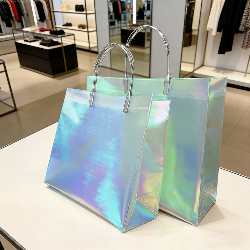 Luxuseinzelhandel und Boutiquen: Für hochwertige Mode, Schmuck, Kosmetik und Spirituosen. Firmengeschenke und Veranstaltungen: Als hochwertige Geschenktüte für Kunden oder Teilnehmer, perfekt für die Aufbewahrung mehrerer Gegenstände. Bauernmärkte und Lebensmittelfachgeschäfte: Wo Wasserdichtigkeit und Haltbarkeit unerlässlich sind. Markeneinführungen und Werbekampagnen: Um einen unvergesslichen und bleibenden Eindruck zu hinterlassen. Hochzeiten und besondere Anlässe: Als stilvolles und nützliches Gastgeschenk oder als Dankeschön-Tasche.