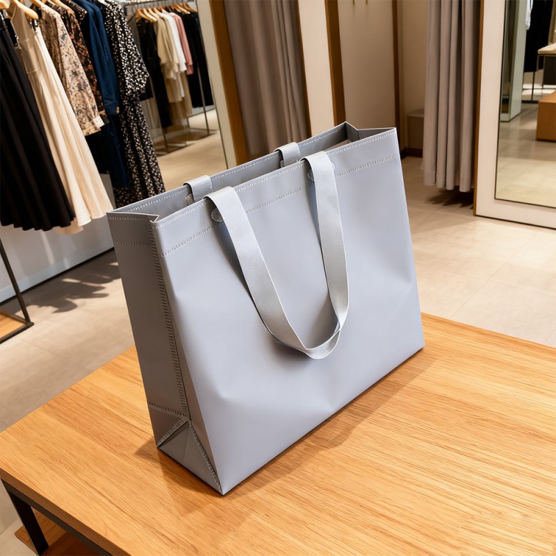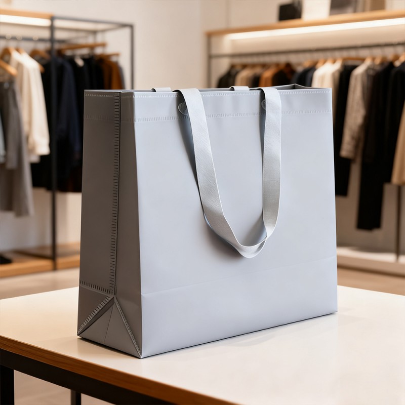 Dreischichtige Struktur: Die äußere Schicht aus BOPP sorgt für vollständige Wasserdichtigkeit und hervorragende Druckkompatibilität. Bietet hervorragende Feuchtigkeitsbeständigkeit, Verschleißfestigkeit und ein schönes Aussehen. Das speziell behandelte Kraftpapier verfügt über eine glatte und haltbare Mittelschicht, die seine Belastbarkeit verbessert und gleichzeitig sein natürliches und umweltfreundliches Aussehen behält. Die innere Schicht der Perlmuttfolie erzeugt einen luxuriösen Mikrolichteffekt, indem sie das Licht bricht und so den sensorischen Wert des Produkts steigert. Hervorragende physikalische Eigenschaften: Tasche und Griff sind durch Ultraschallwellen verbunden und gewährleisten so eine zuverlässige Leistung auch bei schwerem Inhalt. Die stabile Kombination der dreischichtigen Struktur verhindert eine Delaminierung und bewahrt die strukturelle Integrität unter verschiedenen Umgebungsbedingungen. Die untere Stützstruktur sorgt für selbsttragende Stabilität und verhindert eine Verformung der Tasche. Diese Materialien wurden getestet und halten verschiedenen klimatischen Bedingungen stand, sodass sie für verschiedene Märkte und Jahreszeiten geeignet sind. Umweltinnovation: Kraftpapier wird mit biologisch abbaubaren Klebstoffen hergestellt, die den Umweltanforderungen entsprechen. Durch die Kombination wasserbasierter, umweltfreundlicher Tinte mit einem Produktionsprozess, der keine Klebstoffe verwendet, wurde die Materialrückgewinnungsrate verbessert und gleichzeitig der CO2-Ausstoß reduziert. Hochspezialisierte Anpassung: Wir bieten umfassende Anpassungsdienste. Mit unserer vollautomatischen 10-Farben-Tiefdruckmaschine können wir die exquisiten Designs unserer Kunden auf den Taschen perfekt zur Geltung bringen. Marken und wichtige Informationen können auch durch Verfahren wie Heißprägen und Siebdruck hervorgehoben werden. Die Spezifikationen, Abmessungen und Griffstile des Produkts unterstützen die individuelle Anpassung durch den Kunden vollständig.