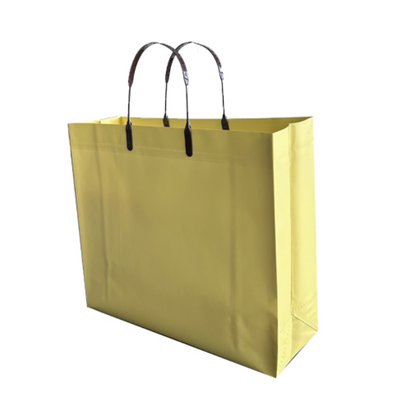 gewährleistet eine dauerhafte Leistung für Benutzer. Die dezent matte Oberfläche sorgt für eine anspruchsvolle Ästhetik und behält gleichzeitig die praktische Funktionalität bei. Speziell entwickelte, verstärkte Griffe sorgen für ein angenehmes Tragegefühl auch bei schwerer Beladung. Erhältlich in mehreren einfarbigen Optionen, die den unterschiedlichen Anforderungen der Markenidentität gerecht werden können. Diese Taschen eignen sich ideal für Einzelhandelsgeschäfte, Lebensmitteleinkäufe und auch für den täglichen Gebrauch und bieten eine perfekte Balance zwischen Stil und praktischen Aspekten. Das wasserdichte Material schützt den Inhalt und behält gleichzeitig stets sein elegantes Aussehen. Benutzerdefinierte Druckdienste stehen für die Markenwerbung zur Verfügung, die Sie benötigen. Als professioneller Verpackungshersteller gewährleisten wir Qualitätsprodukte zu wettbewerbsfähigen Preisen und einem zuverlässigen Lieferservice für unsere Kunden.